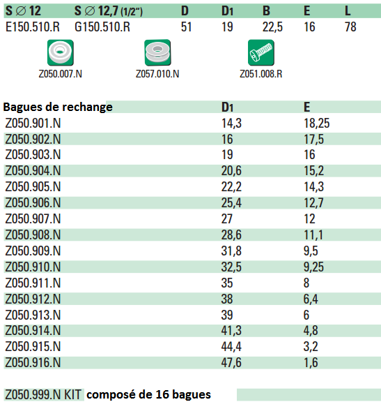 - En remplaçant l'anneau copieur il est possible d'obtenir des épaulements avec profondeur de 1,6 à 18,25 mm et une hauteur jusqu'à 22 mm.