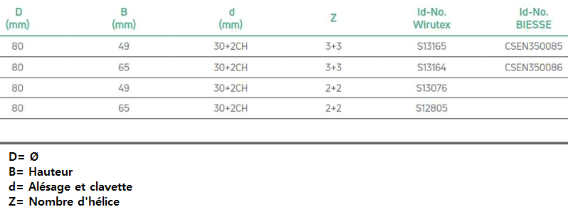 Les fraises existent en hauteurs 49 et 65 mm en Z=2+2 et Z=3+3