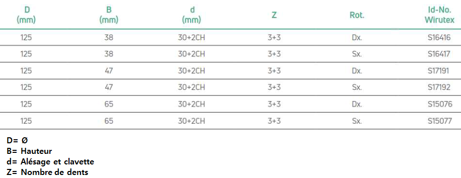 Les fraises existent en hauteurs 38 à 65 mm en Z=3+3