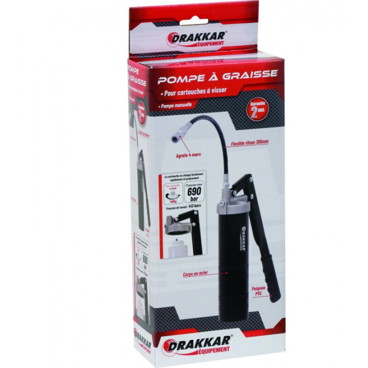 - Dévisser le bouchon de la cartouche de 400g de graisse, insérer dans la pompe, VISSER et GRAISSER !