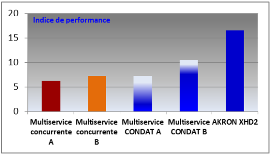 L’indice de performance réunissant les caractéristiques en stabilité mécanique, le comportement de la graisse et la protection des éléments mécanique sous délavage, la durée de vie, montre que la gamme