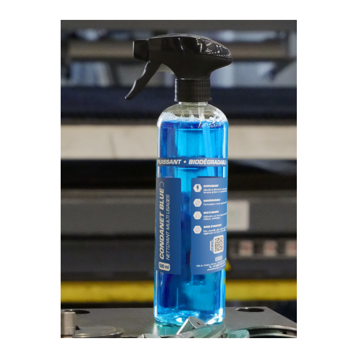 Solution aqueuse, biodégradable, composée de tensio-actifs spécifiques au nettoyage en atelier.