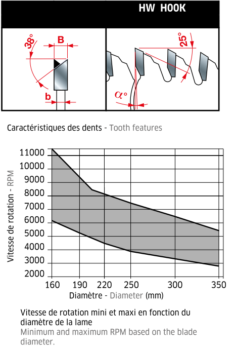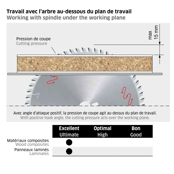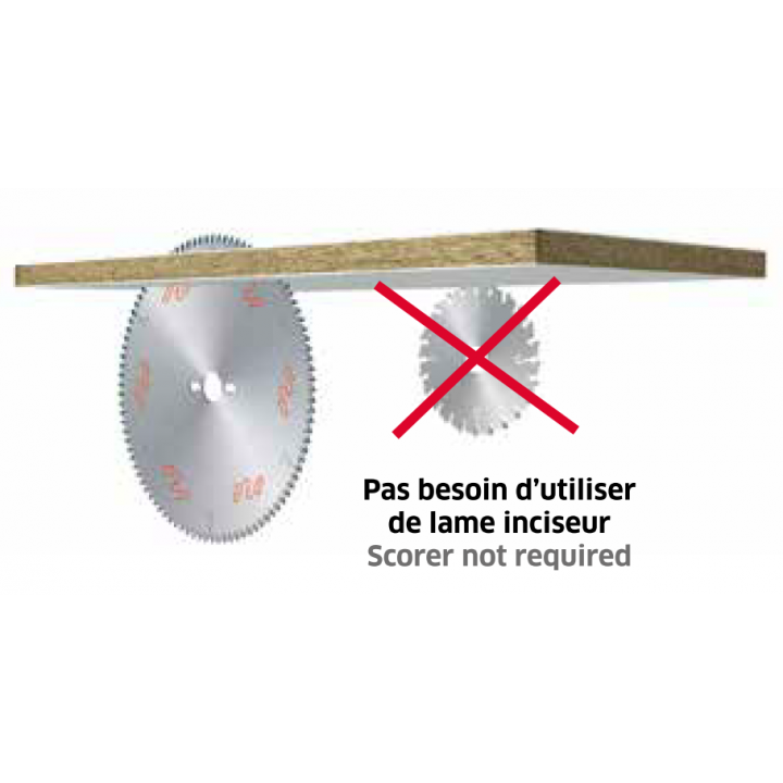 - Lames pour coupes des panneaux revétus, excellente finition sur les 2 faces et panneaux composites