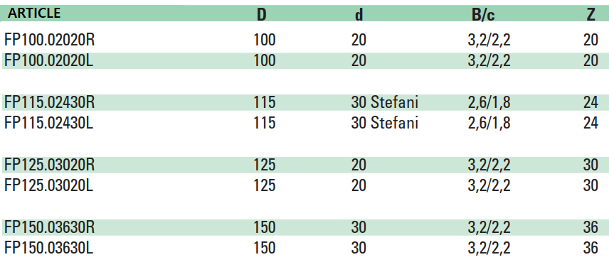 Caractéristiques de la lame de scie circulaire type FP - HW coupe en bout plaqueuses de chants: