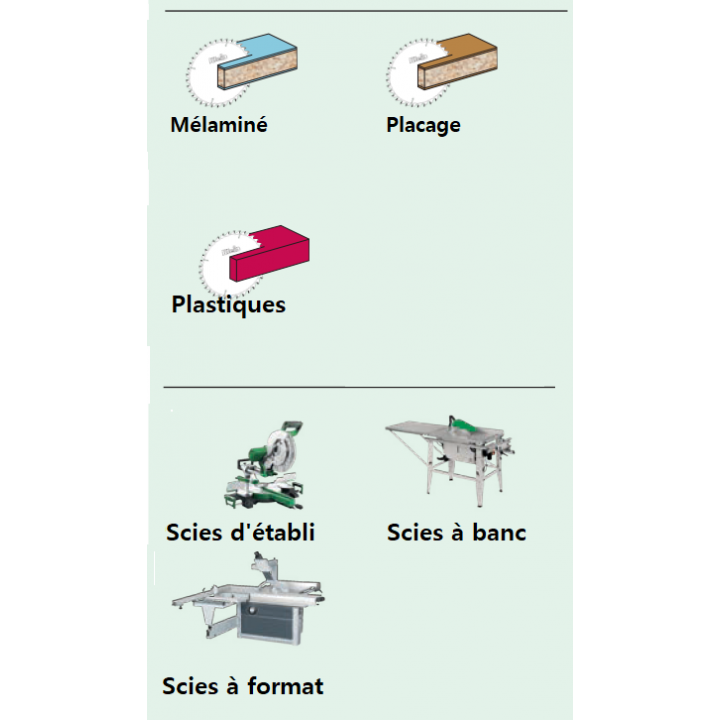 - S'utilisent sur scies à panneaux murale, horizontales et scies à format.