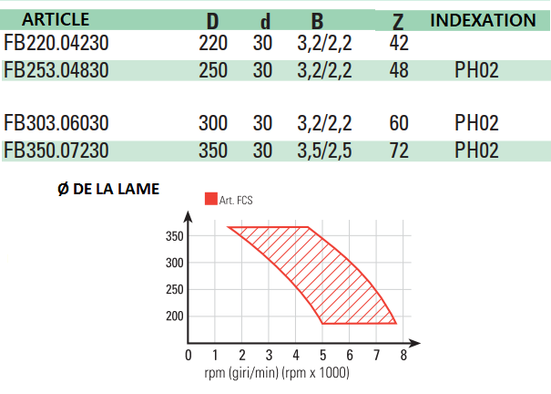 Caractéristiques de la lame de scie circulaire type FB - HW pour scie MURALE: