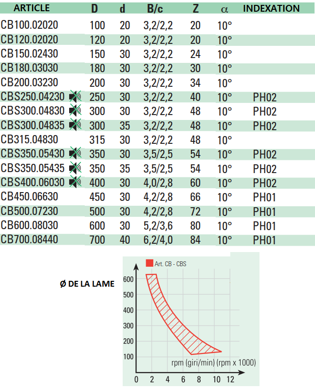 Caractéristiques de la lame de scie circulaire type CB-CBS-HW pour scie circulaire: