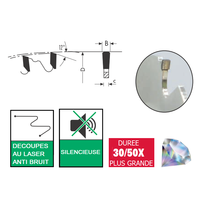 Caractéristiques de la lame de scie circulaire type XGE diamant pour matériaux abrasifs: