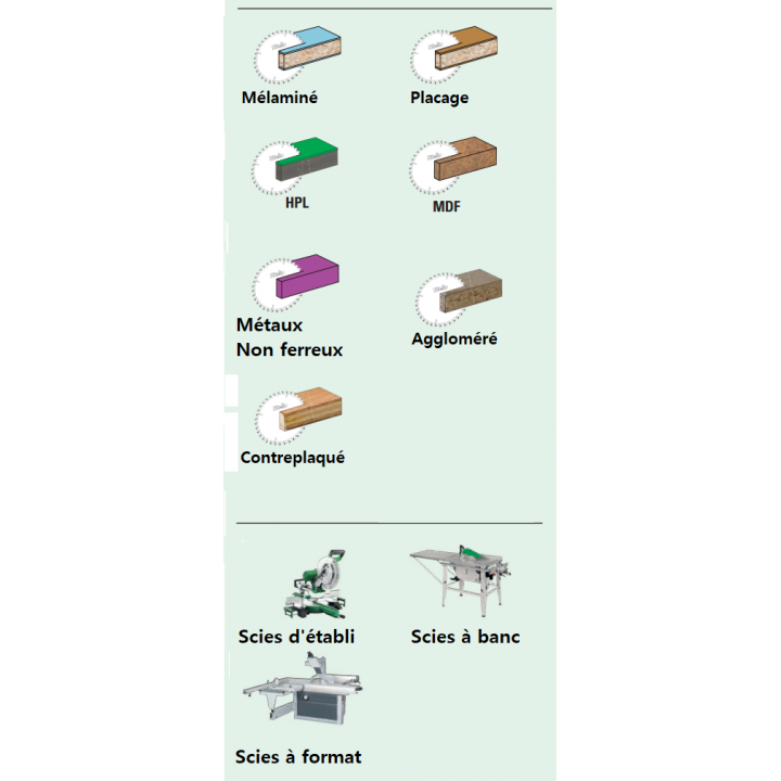 - Lames de scie circulaire HW pour panneaux bilaminés