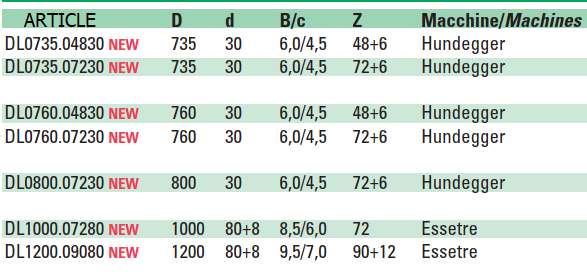 LAME HW TYPE DL POUR CENTRE D'USINAGE CHARPENTE POUR MACHINE HUNDEGGER ET ESSETRE