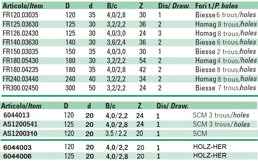 LAMES HW POUR CENTRES D'USINAGE CNC