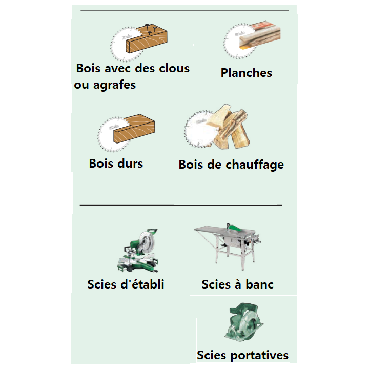 - La conception spéciale des dents rend la lame robuste pour les coupes difficiles sur le bois de construction