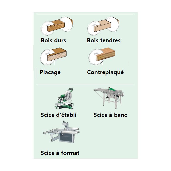 - Idéales pour la coupe des panneaux agglomérés en paquet.