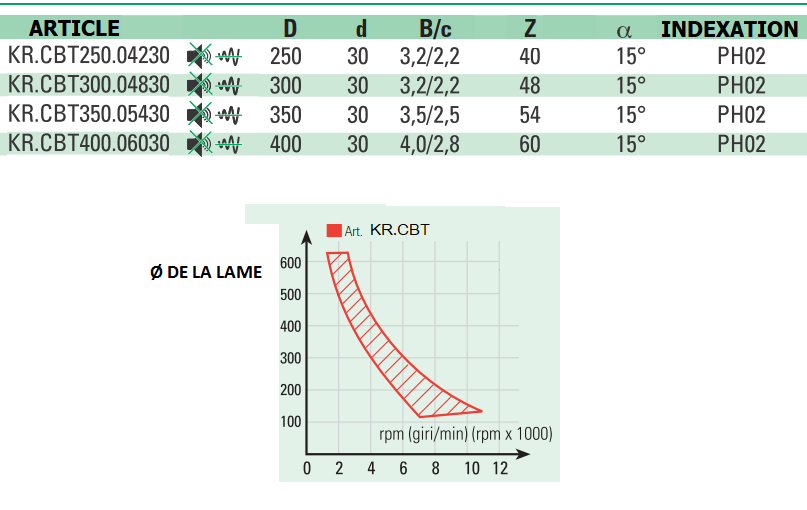 Caractéristiques de la lame de scie circulaire type KR-CBT -HW pour scie circulaire:
