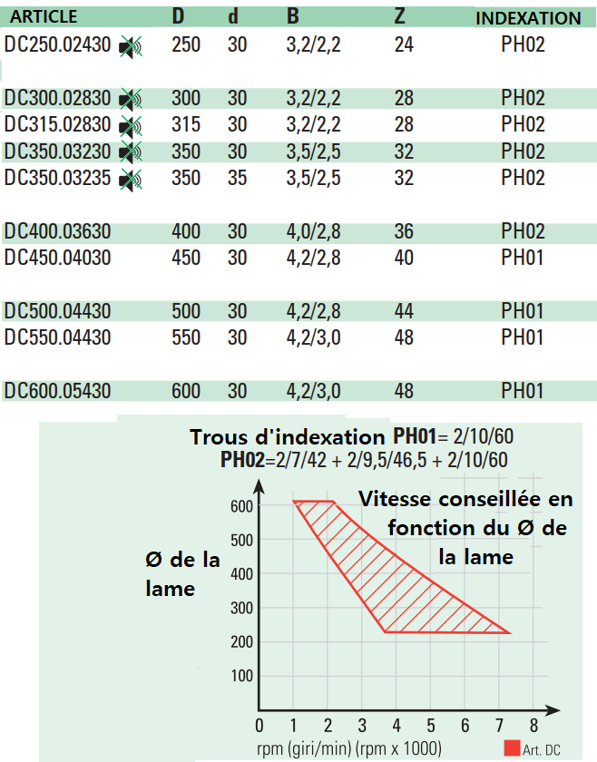 Caractéristiques de la lame de scie circulaire type DC-HW pour scie circulaire:
