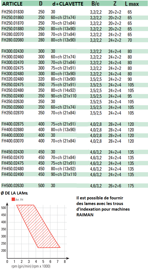 Caractéristiques de la lame de scie circulaire type FH-HW pour scies circulaires multilames: