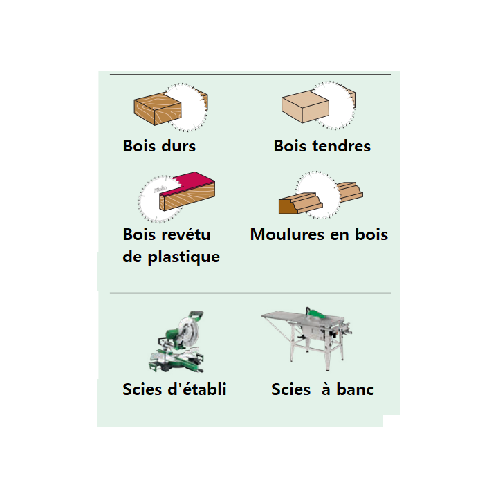 - S'utilisent sur scies à formats, scies radiales ou pendulaires