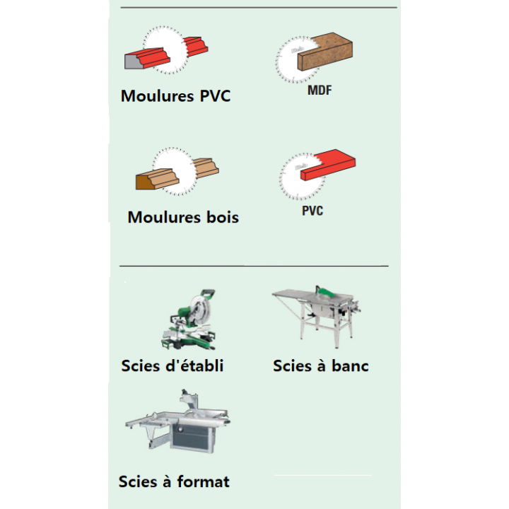 Caractéristiques de la lame de scie circulaire type MLS-HW pour "MOULURES":