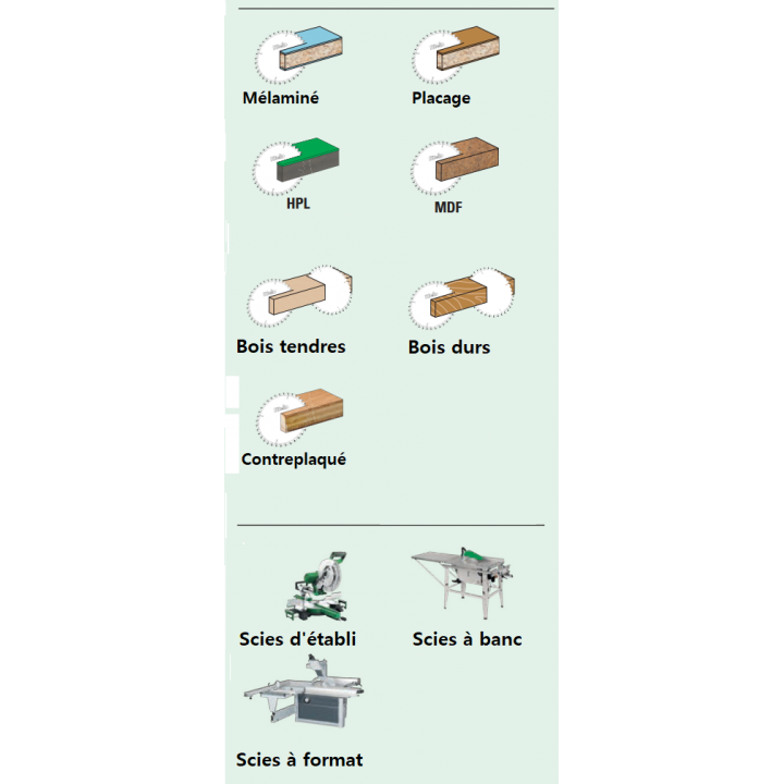 - lames pour scies circulaires denture diamant pour panneaux bilaminés