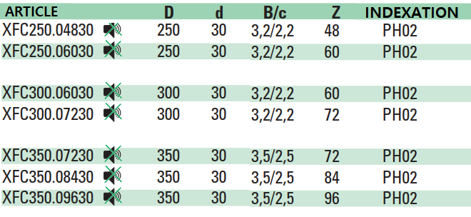 Caractéristiques de la lame de type (PKD) XFC pour scies circulaires denture diamant: