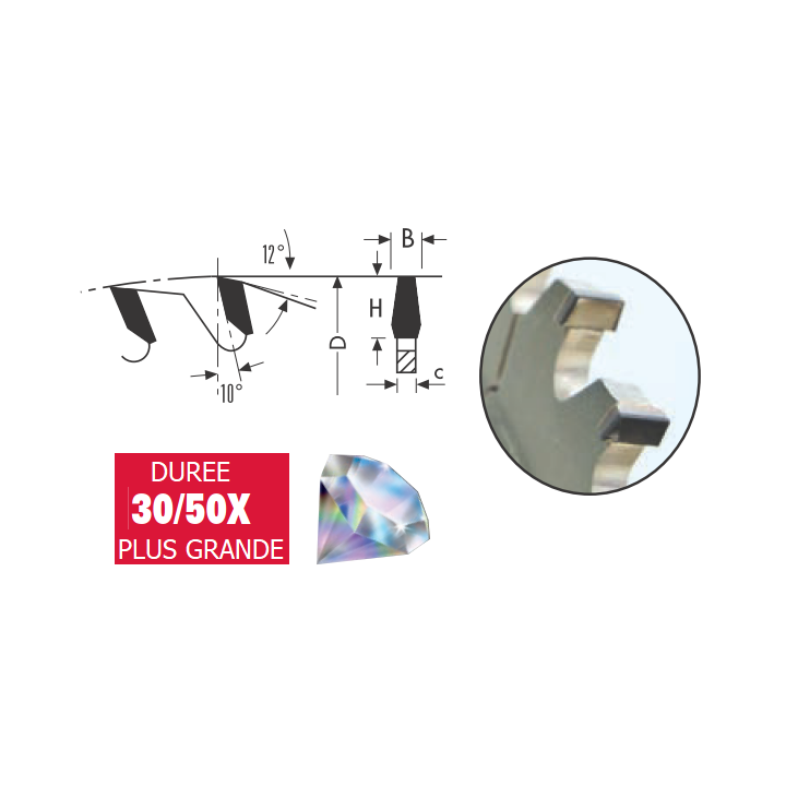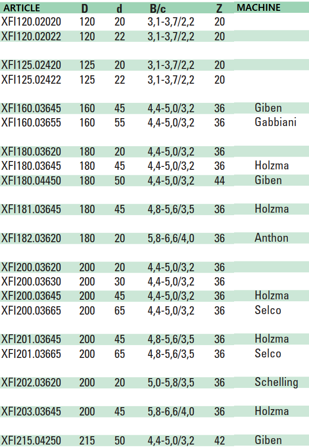 Les lames type (PKD) XFI inciseurs coniques denture diamant sont idéales pour la coupe du long et travers des bois durs, tendres, exotiques, compensés, plaqués, mélaminés sur deux faces, MDF.
