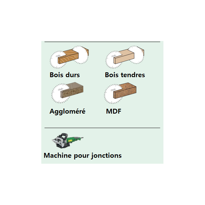 - Pour le logement des inserts "Lamello" sur tous types de bois.