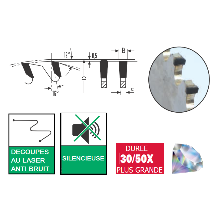 - Hauteur dents H= 4 mm. possibilité avec dents de H= 5/6 mm