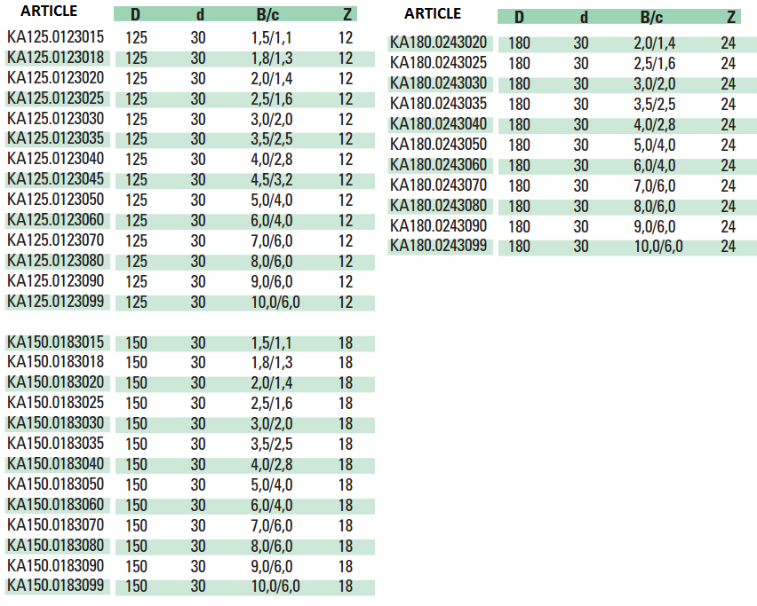 Caractéristiques de la lame de scie circulaire type KA - HW pour le rainurage: