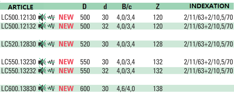 Caractéristiques de la lame de scie circulaire type LC-HW pour "Aluminium":