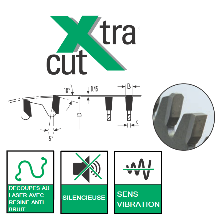 • Silencieuses, antibruit avec résine spéciale insérée dans les découpes de la lame.