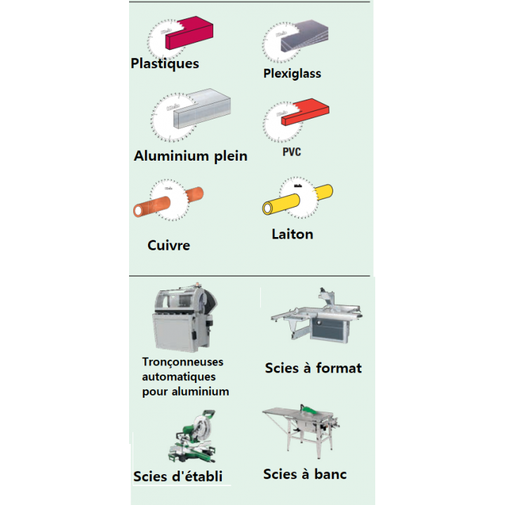 • Pour la coupe de l'aluminium, PVC et métaux non ferreux