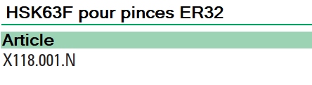 - KIT X118.001.N POUR CNC CÔNES HSK63F PINCES ER32