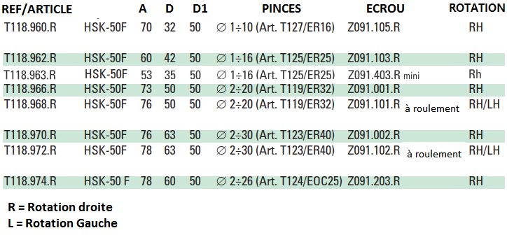 PORTE-OUTILS T118   CÔNE HSK 50F