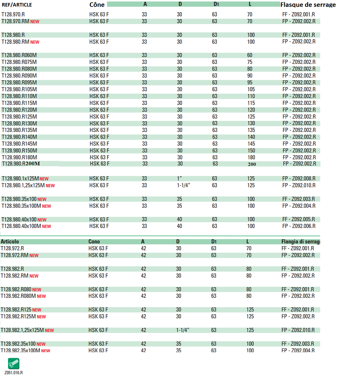- ARBRES PORTE-OUTILS T128 A CÔNE HSK63F