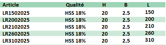 FERS DE DEGAUCHISSEUSE - RABOTEUSE 20 X 2.5 HSS 18 CHROME