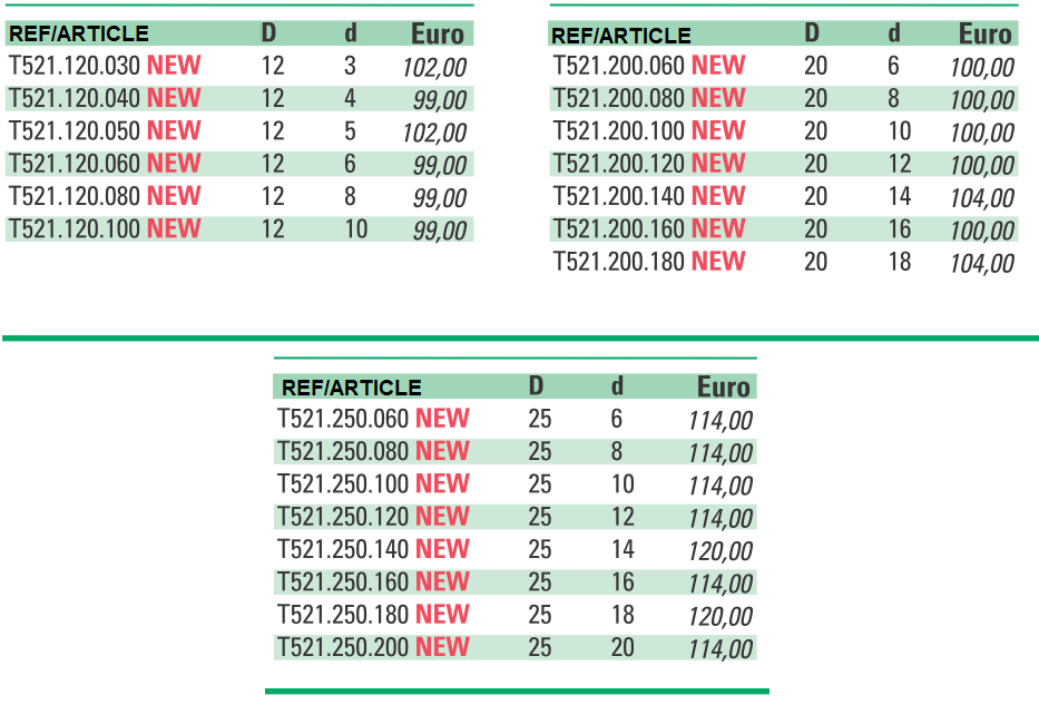 • Les pinces de réduction permettent de monter différents diamètres avec un seul mandrin hydraulique
