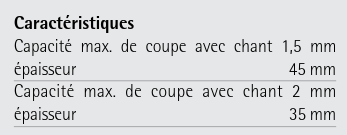 Coupe en bout pour chant de 2 mm et angles de 90°.