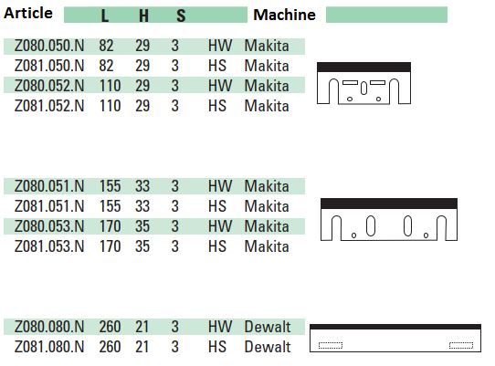 FERS HW-HS POUR RABOT ELECTRIQUE Z080 - Z081