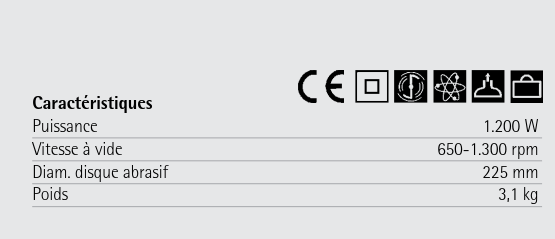 Idéal pour les peintres et plaquistes notre machine permet un travail rapide sans fatigue. Rendement important. Régulation électronique de la vitesse autorisant la meilleur adaptation à la surface travaillée et au abrasif employé. Connexion d'aspiration rapide par système baïonnette.Mallette de transport incluse.Electronic speed control to choose the most suitable speed for the surface to be sanded and the sanding paper. Dust collection nozzle with fast bayonet connector.Carrying box included