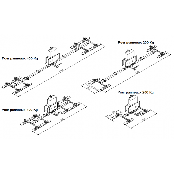 Pour charge 400 Kg 4+4 ventouses 700x150