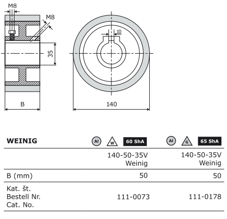 - WEINIG ROUES CORROYEUSES Ø140 ALESAGE 35 - 60 ET 65 SHORE