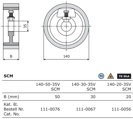 ROUES CORROYEUSES SCM Ø 140 ALESAGE 35
