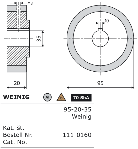 - WEINIG ROUES CORROYEUSES Ø95 ALESAGE 35 - 70 SHORE