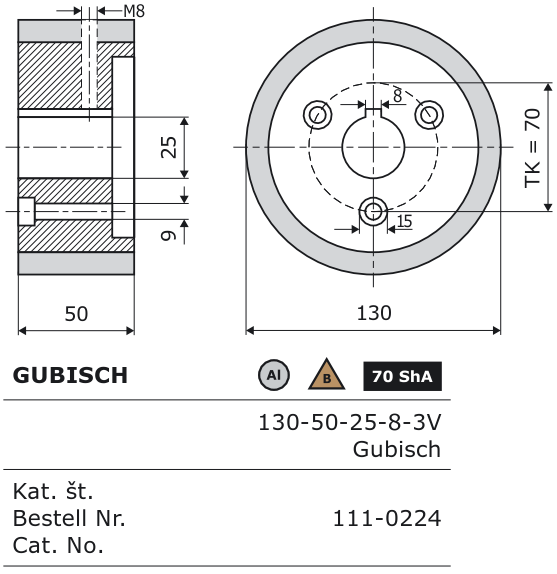 - ROUES CORROYEUSES GUBISCH Ø130 ALESAGE 25 - 70 SHORE